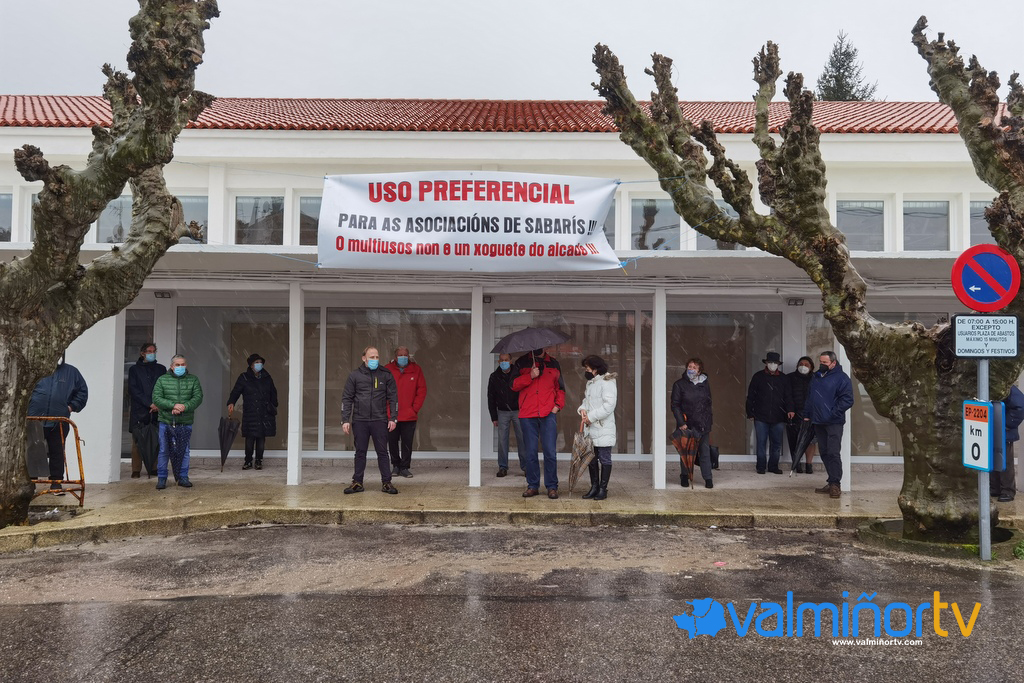 Unha trintena de persoas acudiron este martes á concentración convocada polas seis asociacións de Sabarís –Castro e Ladeira, Comunidade de Montes, ATV Distrito XVIII, PICA, Club de Bolos A Rega e Coemsa- para reclamar un uso preferente do novo miltiusos, que conta con oito espazos e unha extensión que rolda os 800 metros cadrados. O presidente da Asociación de Veciños Castro e Ladeira, Martín Otero, considera que o alcalde, Carlos Gómez, faltou á súa palabra “e non ten intención de proporcionarnos un local permanente, nin a nós nin a ningunha asociación da parroquia”.