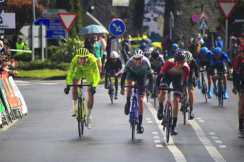 Mientras el hombre que rodaba en cabeza de carrera hacía camino, el pelotón se iba seleccionando con el transcurrir de los “muros” puntuables y entre los componentes del grupo principal se mantenían tres representantes de la formación olívica: Fernández, Pelayo Monasterio y Asier González. Escoltado por sus compañeros, el cántabro pasó al ataque a falta de 40 km.