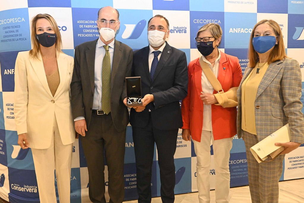 El conselleiro de Sanidad, Julio García Comesaña, recogió esta mañana la medalla de oro que otorga anualmente la asociación ANFACO-CECOPESCA en reconocimiento por la labor realizada por los profesionales sanitarios en la gestión de la pandemia provocada por la covid-19.
