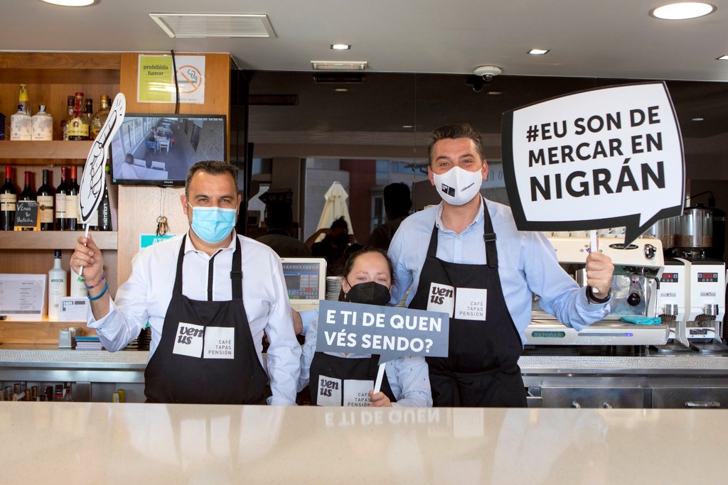 El Ayuntamiento de Nigrán continúa con su campaña de promoción del comercio local “Eu son de comprar en Nigrán. E ti de quen ves sendo?” con el lanzamiento hoy a las 17:00 horas en sus redes sociales del primero de los vídeos. Así, el estreno estará protagonizada por Amador Domínguez, propietario desde hace 17 años del ya histórico establecimiento Venus, situado en el centro del municipio. A lo largo de los próximos meses el Ayuntamiento irá lanzando sucesivos vídeos de menos de 3 minutos de duración con su respectivo comerciante narrando su historia personal al tiempo que invita a consumir localmente, juntos representarán al tejido empresarial del municipio al ser de diferentes sectores y parroquias. La participación en esta campaña, que consta también de valgas, carteles, pegatinas, vinilos y bolsas de papel kraf, se mantendrá a lo largo de todo el año y está abierta a quién desee participar previa solicitud a comunicacion@nigran.org