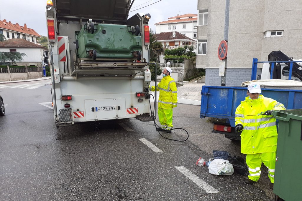 Estas limpezas interiores e exteriores dos contedores realízanse de dúas formas distintas dependendo do tipo de contedor. En canto á limpeza de contedores de cor verde, esta realízase cun camión especial no que se introduce o contedor, previamente baleirado, ao que se aplica xabón e auga a elevada temperatura. Unha vez dentro do camión, o contedor ábrese para que a limpeza póidase realizar por dentro e por fóra do mesmo. En canto aos de cor gris, a limpeza está a levarse a cabo cunha solución hixienizante e odorizante a presión. Esta mesma solución utilízase no chan onde se sitúan ambos os dous tipos de contedores, e compleméntase coa retirada de restos que poidan quedar enganchados, herbas dos bordos, así como os residuos que indebidamente os cidadáns deixan depositados no exterior.