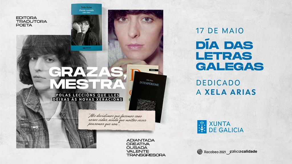 El Ayuntamiento de Nigrán ofrece este sábado 15 de Mayo desde las 19:00 horas en el Auditorio Municipal su acto central de las Letras Gallegas, dedicado íntegramente a la figura de Xela Arias, con una charla-coloquio y posterior concierto-homenaje. La entrada será gratuita hasta completar el aforo permitido por las autoridades sanitarias y los asistentes recibirán el libro “Poesías y Retratos” de Xela Arias y el fotógrafo (y marido) Xulio Gil, editado por el Ayuntamiento y Enjaularte para la ocasión.