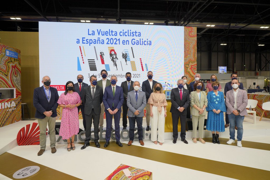 O vicepresidente primeiro da Xunta, Alfonso Rueda, participou hoxe na presentación na Feira Internacional de Turismo (Fitur) en Madrid do percorrido pola xeografía galega das 3 últimas etapas de “La Vuelta 21”. Trátase dunha edición especial que entre o 3 e o 5 de setembro permitirá amosar a comunidade en todo o seu esplendor a través das paisaxes da Ribeira Sacra ou as Rías Baixas atravesando tamén lugares de paso das distintas rutas xacobeas.