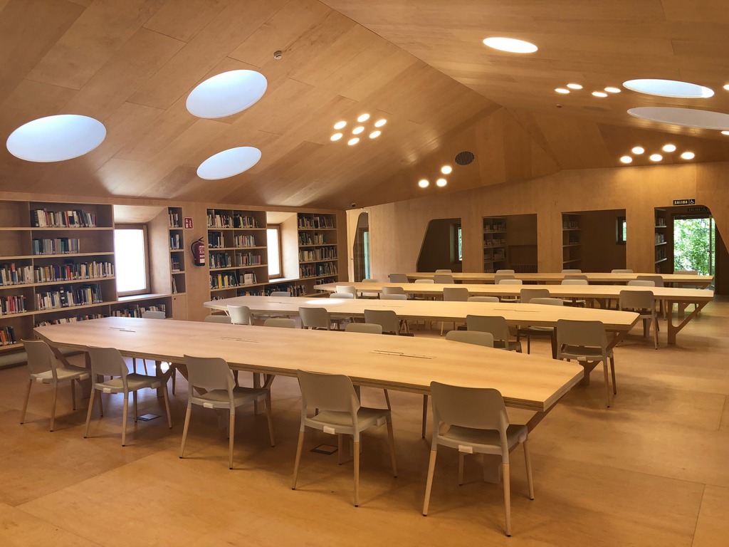 Uno de los principales objetivos ha sido recuperar las relaciones entre los distintos volúmenes que componen actualmente este conjunto arquitectónico, fruto de ir agregando estructuras a lo largo de la historia. Para restablecer la armonía se han liberado los interiores reorganizándolos de manera que no se pierda espacio. También ha sido necesaria la renovación de la estructura arquitectónica existente con el fin de recuperar nuevos espacios adaptados a las necesidades de una biblioteca de nuestros días. Desde un principio, el proyecto ha apostado por materiales reciclables y de escaso impacto para el medio ambiente y para la estética de edificio en general. También se ha buscado una distinción, sin causar impacto visual entre las nuevas actuaciones y las anteriores.