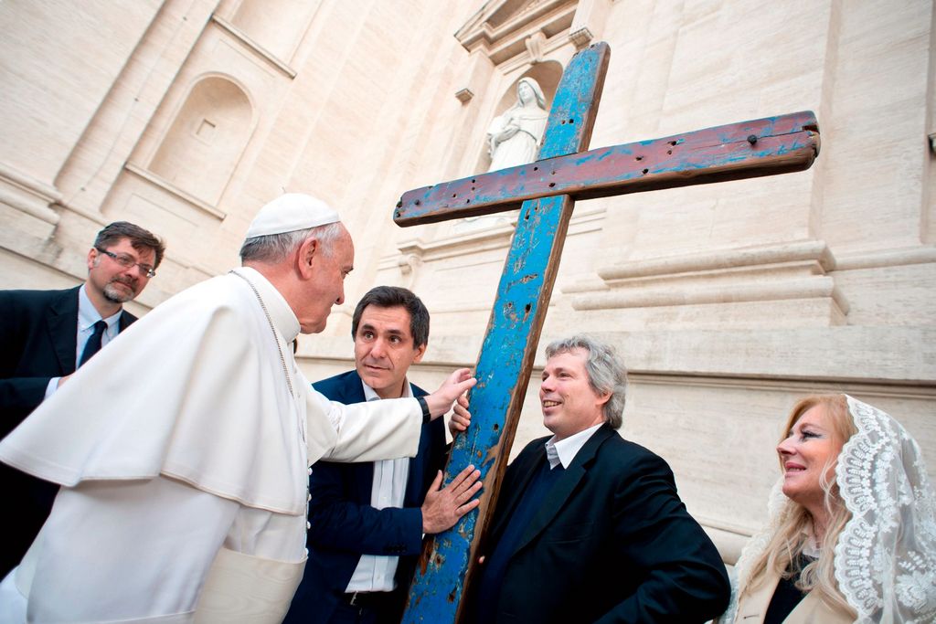 Con más de dos metros y medio de altura, metro y medio de ancho y un peso de unos 60 kilos, la cruz fue bendecida por el Papa Francisco en 2014, no mucho después de que una patera de migrantes naufragase frente a la isla de Lampedusa, dejando 366 muertos.