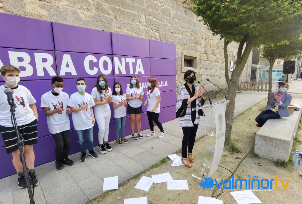 La Alameda de la calle Carabela Pinta acogió el acto de presentación de la instalación artística “Estelas da Palabra”, el proyecto final de la programación “Primavera Lila” organizada por la Concejalía de Igualdad del Ayuntamiento de Baiona en colaboración con el Centro de Información a la Mujer (CIM). Con ella se quiere incorporar en el espacio público áreas de encuentro; dotarle a la palabra una voz visual que suscite respuestas y reflexión sobre el lenguaje inclusivo. Es el resultado del trabajo colectivo hecho por la artista Irene Silva en colaboración con los centros de enseñanza CPI de Cova Terreña y el IES 1º de Marzo dentro del proyecto “A túa palabra conta”.