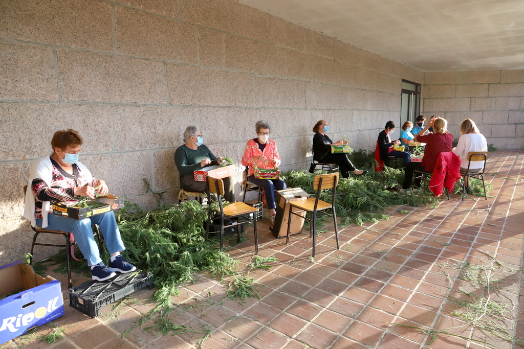 Se reúnen todas las tardes y las horas les pasan volando con el claro objetivo de no perder una tradición tan arraigada como las alfombras florales del Corpus que este año recaen en el 6 de junio. Como no podría ser de otro modo, la pandemia golpeó de lleno a una de las celebraciones litúrgicas de más calado de la localidad miñorana que aquí lleva realizándose desde la década de los 50, y que además de hacerlas peligrar provocaron situaciones tan extrañas como una Virgen de los Dolores o un Jesucristo representados con mascarillas, y es que la pandemia no entiende de religiones. El 2020 quedaron reducidas a una décima parte y este, aunque la previsión es más alentadora, también serán en formato “mini” aunque no tan encorsetadas como las anteriores.