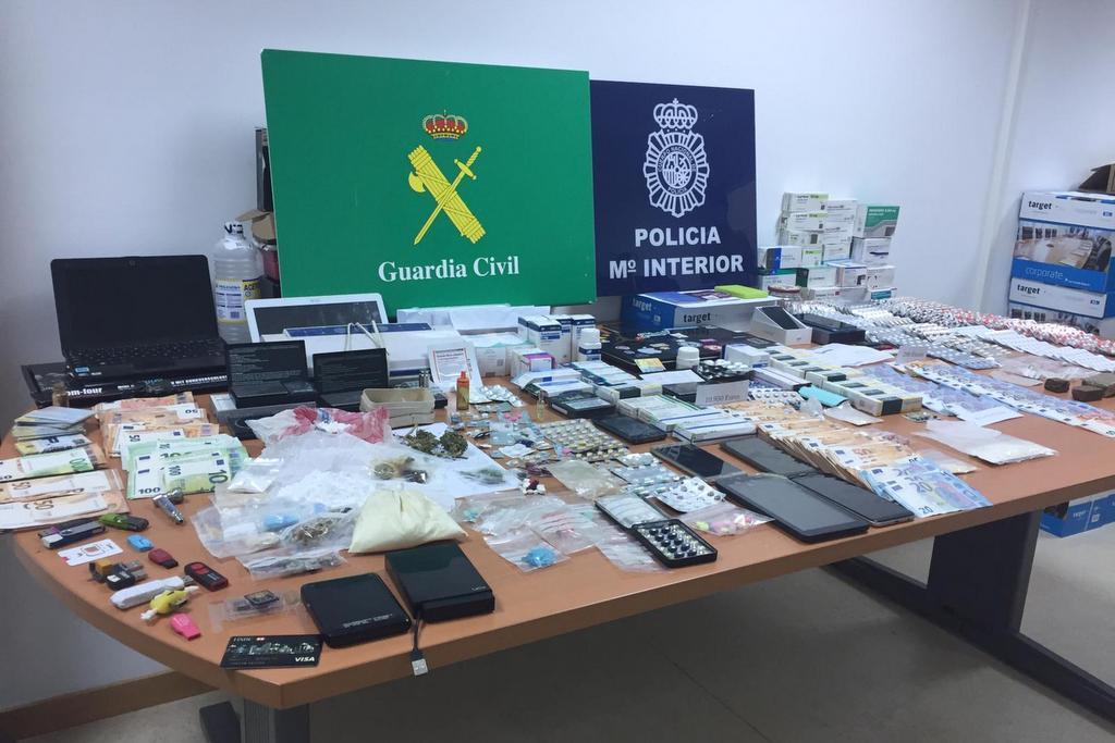 A operación desenvolveuse de forma simultánea en catro localidades, os axentes detiveron a catro persoas en Vilagarcía de Arousa, Marín, Lorca e Córdoba e efectuáronse catro entradas e rexistros nas catro localidades nos que se interviñeron múltiples fármacos, substancias estupefacientes, 30.000 euros en efectivo e equipos informáticos.