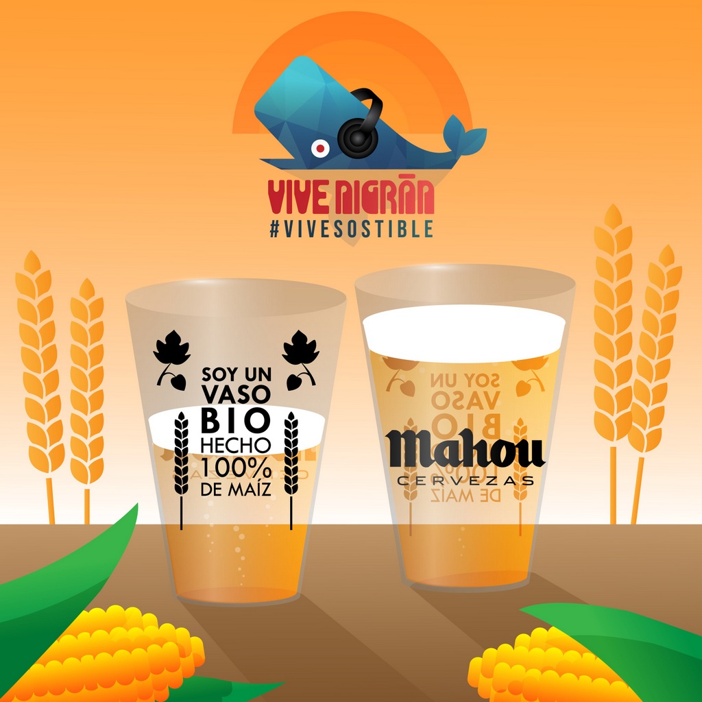 Desde o seu inicio, a organización de Vive Nigrán, tivo presente a necesidade de actuar con respecto ante a riqueza ambiental da contorna na que se desenvolve o festival. Dentro da iniciativa VIVE SOSTIBLE, o festival xa desenvolveu dúas recollidas de residuos mariños en Praia América (chegando a reunir un total de 221kg na súa primeira recollida). A esta actividade o festival quere sumar o uso de vasos biodegradables, que sexan o máis sostibles e respectuosos co medio ambiente. Esta iniciativa púxoa en marcha en colaboración con Mahou, patrocinador principal do festival a través da súa plataforma musical Vibra Mahou e cervexa oficial de Vive Nigrán.
