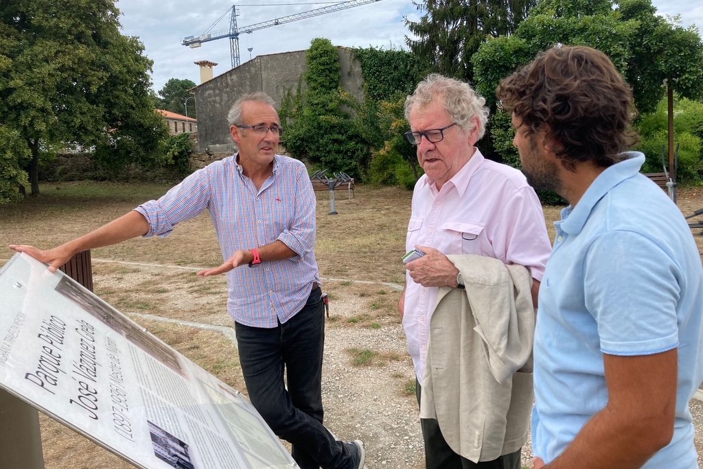 O célebre hispanista Ian Gibson asinou este luns o Libro de Honra do Concello de Nigrán despois de que o alcalde, Juan González, o levase ao parque dedicado a Xosé Vázquez Grela e á tumba do Ceán onde descansa este mestre nacional “paseado” o 12 de setembro de 1936 ao carón das Angustias. Visitou tamén o lugar de traballo do rexedor, historiador especialista na Guerra Civil e autor do libro “Nigrán. Memoria dunha Guerra”, no que aborda, entre outras, a figura de Grela. Na visita estivo tamén acompañado por Pablo Romero-Fresco, veciño de Nigrán e director do recén estreado documental “Donde acaba la memoria”, peza na que retrata a figura de Gibson (motivo da súa visita a Galicia). “Confeso que persoalmente é un soño cumprido coñecer a Ian Gibson e poder traelo a Nigrán”, recoñeceu González tras exercer de guía.