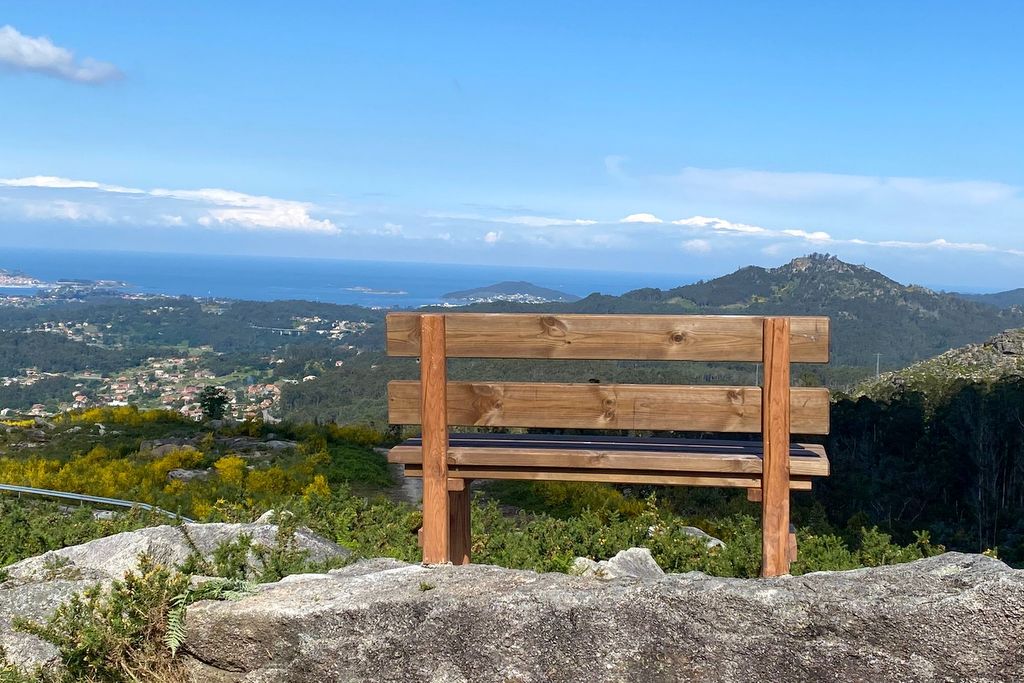 En caso de que el banco no aparezca, colocarán otro en el emplazamiento situado a unos 400 metros de altitud, desde donde se puede admirar O Galiñeiro, A Groba, Monteferro o Baiona y su bahía.