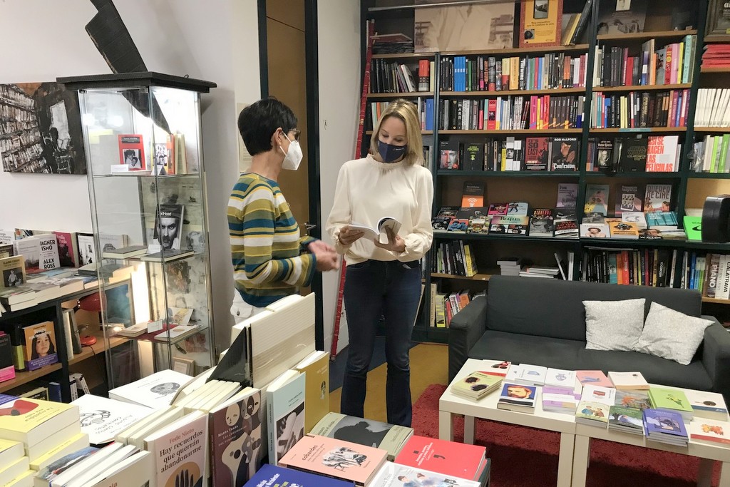 La delegada territorial de la Xunta en Vigo, Marta Fernández-Tapias, visitó esta mañana la librería viguesa Versus, una de las 44 entidades y empresas del área de Vigo adheridas en estos primeros días de plazo al Bono Cultura de la Xunta. La iniciativa del Gobierno gallego ofrece descuentos en compras o en la utilización de servicios culturales del que los clientes podrán empezar a disfrutar el 1 de noviembre. En el conjunto de Galicia, por lo de ahora, son 300 las empresas culturales que en los primeros días del plazo de la adhesión para profesionales se sumaron a este programa.