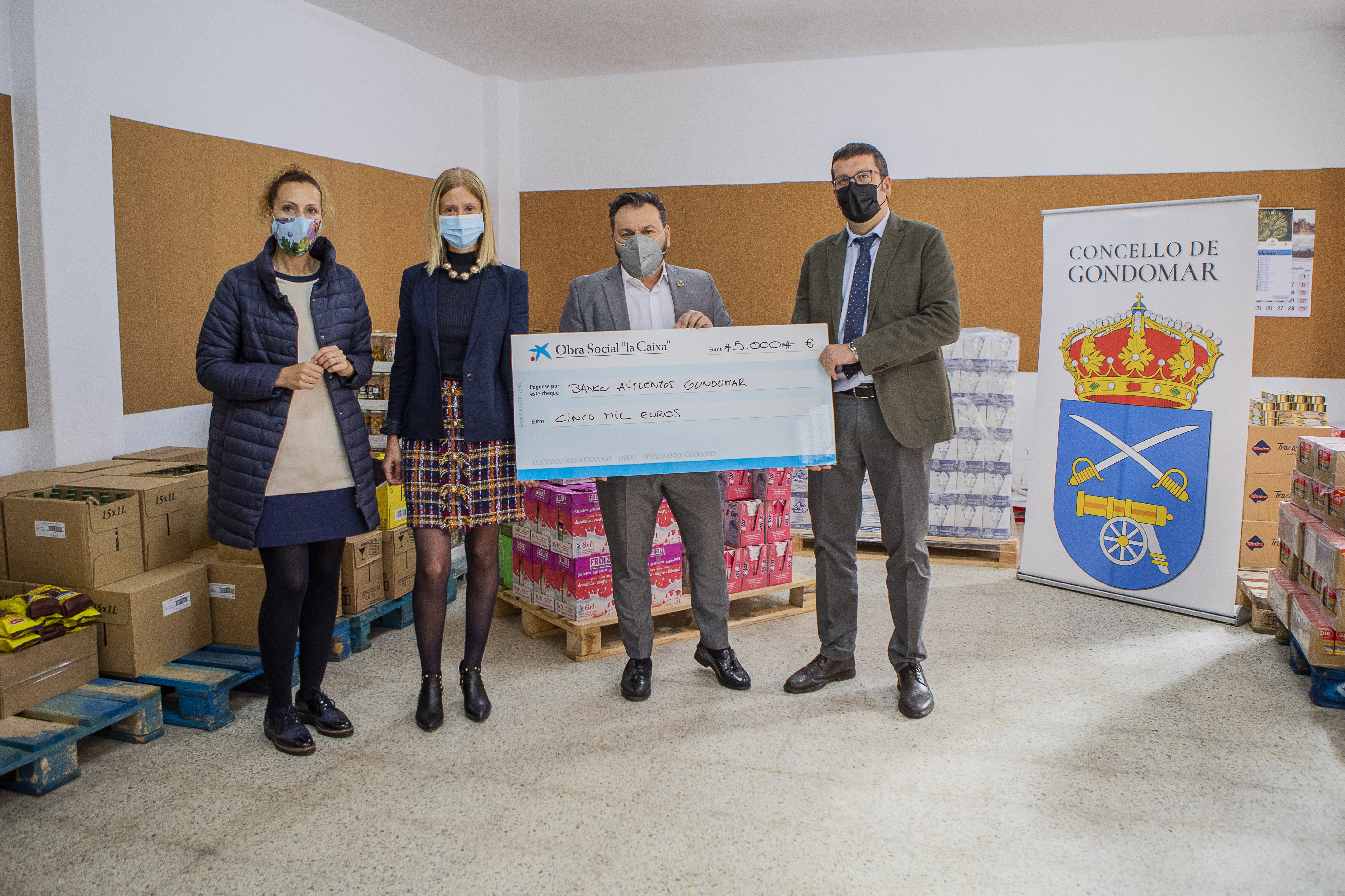 Un año más el Ayuntamiento de Gondomar y Caixabank aúnan esfuerzos para ayudar a las familias más vulnerables del municipio con la aportación, por parte de la Obra Social de la Fundación la Caixa, de 5.000 euros anuales que se destinarán a la adquisición de alimentos y productos de primera necesidad.