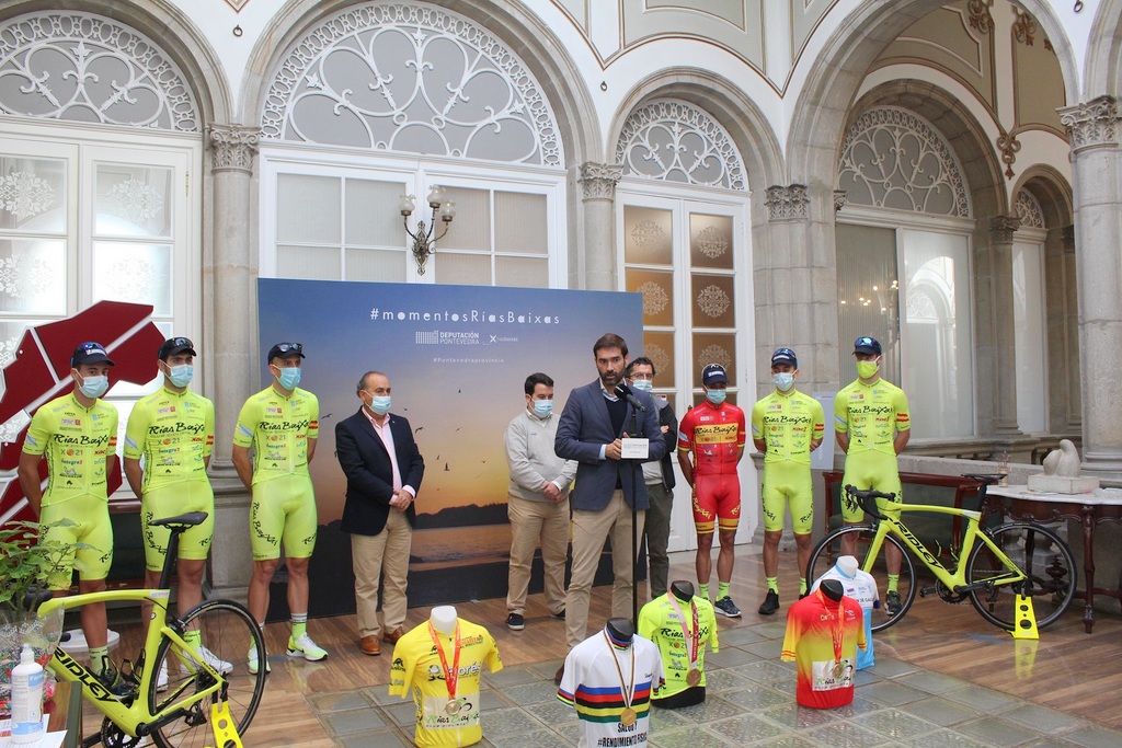 El Club Ciclista Rías Baixas está de enhorabuena tras proclamarse primero en el ranking élite español y quiso celebrarlo de la mano de la Diputación de Pontevedra. El diputado de deportes, Gorka Gómez, trasladó las felicitaciones de la presidenta provincial por las 18 victorias conseguidas para alcanzar este “éxito tan grande para el ciclismo gallego” que convirtió al club en el “mejor club de España en la categoría élite gracias al trabajo de todo un equipo”. En este sentido, Gorka Gómez subrayó la “durísima preparación” de esta temporada marcada por las restricciones sanitarias, que en muchas ocasiones impidieron que los ciclistas llevaran a cabo sus entrenamientos con normalidad.