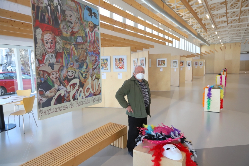 Desde el viernes 4 de febrero, el Multiusos de Sabarís permite realizar un viaje a golpe de vista por más cincuenta enclaves que presumen de figuras propias del Entroido, gracias a la exposición del pintor vigués Carlos Padín Avendaño. A la muestra presentada inicialmente hace exactamente dos años en la Confederación de Empresarios de Pontevedra bajo el título “Personaxes do Entroido Galego” se le suman otra veintena de óleos al agua, un total de 52 obras de las que su autor asegura que no serán las últimas. “Existen en torno a 130 figuras en toda Galicia y ahora mismo tengo en proyecto algo más de una veintena”, adelanta el artista.