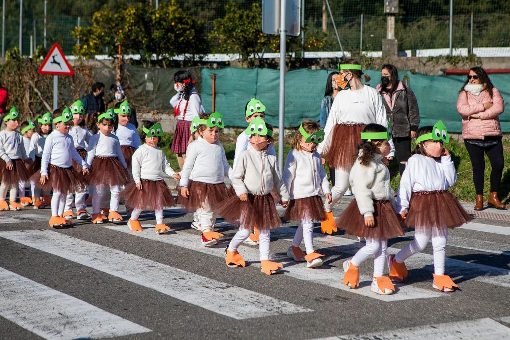 Preto de 800 alumnos e alumnas do CEIP Chano Piñeiro, IES Auga da Laxe e Terra de Turonio participaron este venres no Entroido Escolar de Gondomar, toda unha tradición xa no municipio. Tras xuntarse na chaira do Pavillón Municipal Bernabé Costas de Miranda, o desfile comezou cara a Avda. Diego Sarmiento de Acuña, para coller cara á rúa Elduayen e desprazarse ata a Praza da Paradela, para seguir pola rúa Párroco Mariño e xirar en Manuel Losada dirección a Eduardo Iglesias, transversal á rúa Diego Sarmiento e de novo a chaira do Pavillón Municipal. Os nenos e nenas mostraron así os seus disfraces, confeccionados en clase para a ocasión, así como as coreografías creadas e moi pegadas á actualidade social e musical do momento.