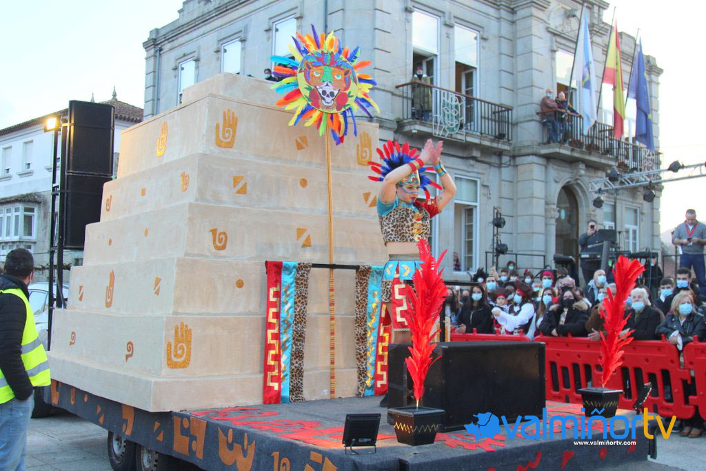 La agrupación “O Millor de Cada Casa” de Vincios presentó la temática de “Queimando Roda”, una fantasía inspirada en las carreras de coches de fórmula uno con el que hacen referencia “a las ganas de salir del garaje tras dos años encerrados en él con las piezas renovadas y ganas de pasarlo bien”. “Valla-Gym” fue el tema elegido por la comparsa del Centro Vecinal y Cultural de Valadares, tirando de la ironía para representar escenas que uno se puede encontrar diariamente en un gimnasio y al mismo tiempo “bajar unos kilos de la amargura cotidiana”.