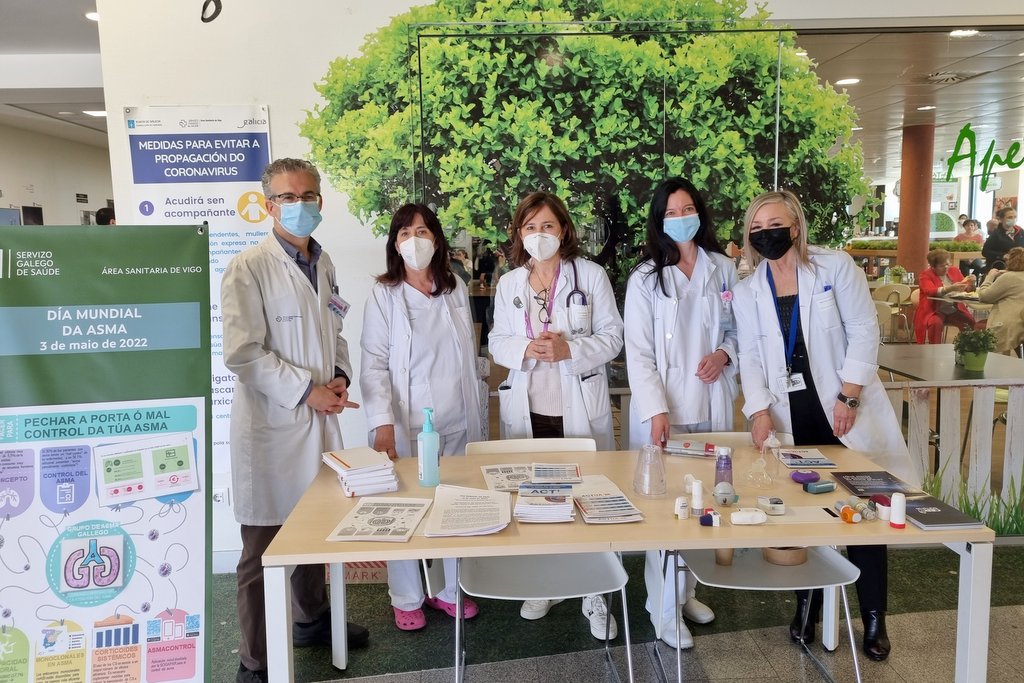O Servizo de Pneumoloxía da Área Sanitaria de Vigo conmemorou hoxe o Día Mundial da Asma que este ano leva o lema “ Pecha a porta ao mal control do teu asma”. Neste senso, os profesionais do servizo instalaron unha mesa informativa no hospital Álvaro Cunqueiro para informar aos usuarios da importancia dun correcto control desta enfermidade e ofrecer recomendacións de estilo de vida saudable para conseguir ese bo control. O 36% dos pacientes con asma teñen un “mal control” da súa enfermidade e un 34,1% adicional presentan “asma parcialmente controlada”.