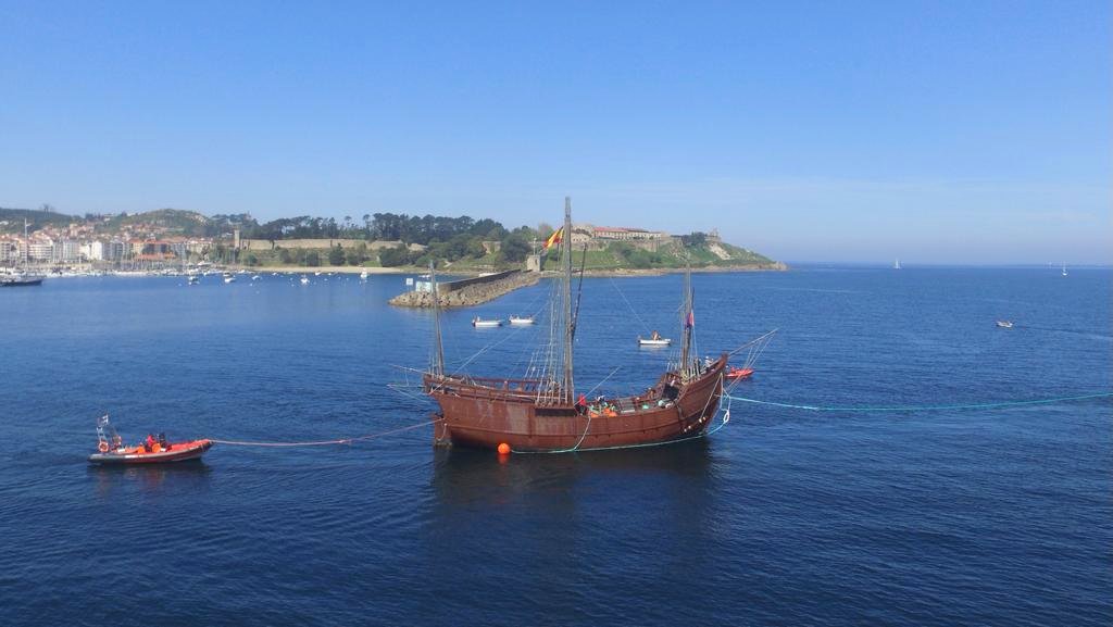 A Carabela foi remolcada ata a Torre do Príncipe pola embarcación “El Capitán”, a “Sálvame I”, unha pneumática Vanguard de 8 metros e medio de eslora, e unha embarcación de apoio Vanguard de 6,2 de eslora do Monte Real Club de Yates, que axudaron á Pinta na saída da súa praza de amarre dentro do porto. Desde a Torre do Príncipe fíxose cargo do traslado o remolcador “Sebastián de Ocampo”. O Alcalde de Baiona, Carlos Gómez Prado, sinala que“desde o Monte Real Club de Yates sempre están dispostos a botarnos unha man, polo que agradezo enormemente a súa colaboración na saída da Carabela á baía”.