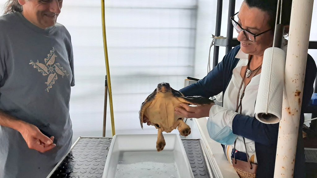 Precisamente, Maica Larriba, puido comprobar o procedemento de recuperación dunha tartaruga común (Caretta caretta) ingresada desde hai un mes nas instalacións da ONG. Foi atopada por un barco preto da Illa de Ons en estado de pasividade e aparentemente morta. O animal foise recuperando e durante varias semanas defecou plásticos, tal e como lle sucede a todos os exemplares desta especie que rescata a Cemma. A tartaruga, xa completamente recuperada, será devolta ao seu hábitat no día de mañá preto de zona onde foi rescatada.