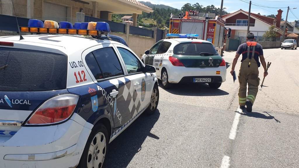 Unha patrulla da Garda Civil do posto de Baiona e unha patrulla da Policía Local desprazáronse ata o lugar, tentando nun primeiro momento os axentes actuantes abrir a porta cos medios dispoñibles. Finalmente requiriuse a intervención do GES do Val Miñor para abrir a porta, acceder ao interior e sufocar o lume. Grazas á rápida intervención, o incidente non foi a máis.