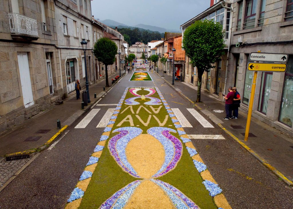 Desde hace semanas, los vecinos recogieron las flores y comenzaron los preparativos de los diseños. Gracias al esmerado trabajo de los diferentes colectivos de Gondomar -“Mujeres Rurales de Gondomar”, “O Millor de Cada Casa de Vincios”, el “Centro Cultural de Vincios”, el “Grupo de Gaiteros Novos Aires de Couso”, la “Asociación San Vicente de Muñufe”, el “Club de Patinaje de Gondomar” y el “Centro Cultural Vecinal de Peitieiros”- que colaboraron con la Concejalía de Cultura en la confección y diseño de las alfombras florales, un año más, consiguieron que el Domingo de Corpus Gondomar despertara con las calles llenas de color.