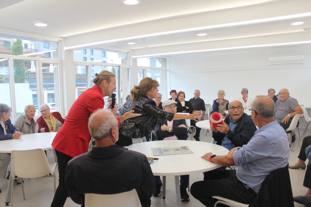 “Grazas a vós este local practicamente sen uso a partir de agora cumprirá unha función social da que estamos moi orgullosos”, recalcoulles o alcalde, quen fixo entrega das chaves ao colectivo. “Aquí tedes xa prensa diaria e xogos, agora agardamos as vosas propostas sobre que máis precisades porque tal e como nos pedísedes, o local estará totalmente baixo a vosa xestión e o Concello colaborará achegando o que consideredes, como poderían ser cursos de memoria ou risoterapia, etc”. Así, a modo de inauguración, onte o Rei Midas e Valeria Baritas dirixiron diversos xogos de memoria ou simplemente dirixidos a xerar risa entre o público.