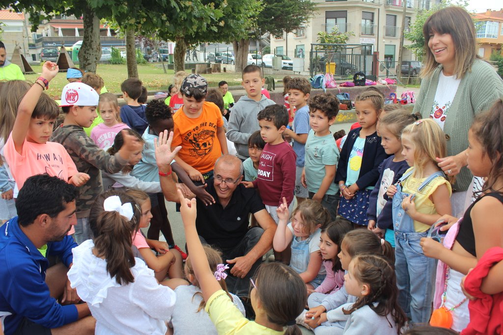 El alcalde de Nigrán, Juan González, junto a la edil de Igualdad, Patricia Diego, de Hacienda y Desarrollo Local, Raquel Giráldez, y la edil de Asuntos Sociales, Bibiana Peixoto, acudieron ayer al CEIP Humberto Juanes para visitar a los niños del “Campamento de Verano 2022” organizado por el Ayuntamiento con el objetivo de favorecer la conciliación de la vida laboral, personal y familiar de los vecinos. La principal novedad de este año es la ampliación del número de plazas, pasando del récord de 120 del 2021 a las 180 actuales, todas de Nigrán, un aumento de casi un 50% y de un 100% en los últimos 3 años.