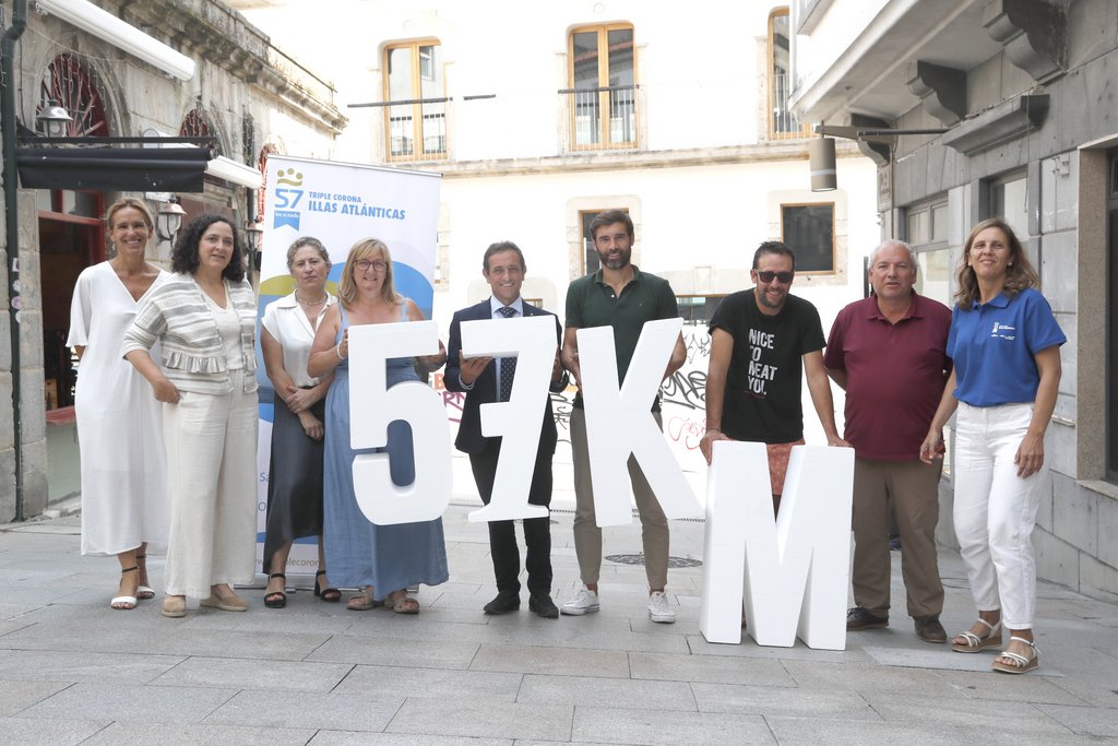 Esta mañá tivo lugar a presentación da terceira edición da Triple Corona Illas Atlánticas 2022-2024 na sede do Parque Nacional das Illas Atlánticas de Galicia en Vigo coa presenza da Directora Xeral de Patrimonio Natural, Belén María do Campo Piñeiro; o deputado provincial de Deportes, Gorka Gómez Díaz; a concelleira de Deportes do Concello de Baiona, Miriam Mar Costas Iriarte; o director do Parque Nacional das Illas Atlánticas de Galicia, José Antonio Fernández-Bouzas; o coordinador institucional de Abanca en Vigo, José Luis Romero Quiroga; a xerente de comunicación de Coca-Cola Europacific Partners na zona Norte, María Troncoso Calvo, e Beatriz Alvariño Díaz del Río, directora da organización da proba.