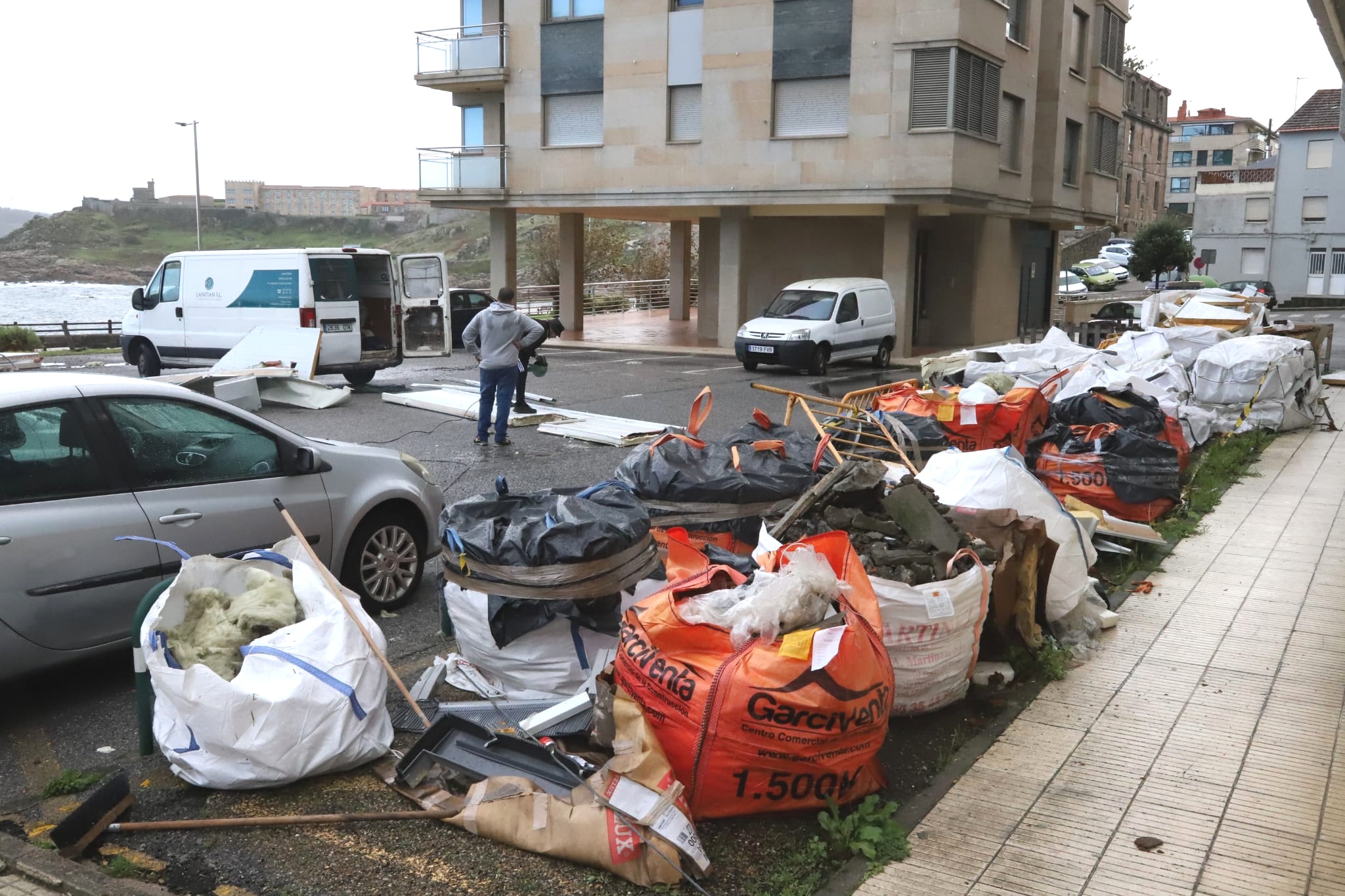 Un episodio de fuertes rachas de viento acontecido al filo de las 7 de esta madrugada en Baiona causó graves desperfectos en la cubierta en obras de uno de los edificios colindantes con la guardería Galiña Azul, situada en rúa Arquitecto Palacios. Según pudieron precisar fuentes de la Policía Local, el fenómeno meteorológico adverso arrancó unas planchas de panel sándwich del tejado llevándose por delante cuatro chimeneas que se precipitaron al vacío y acabaron impactando en el aparcamiento de la zona residencial, por suerte, sin causar daños personales.
