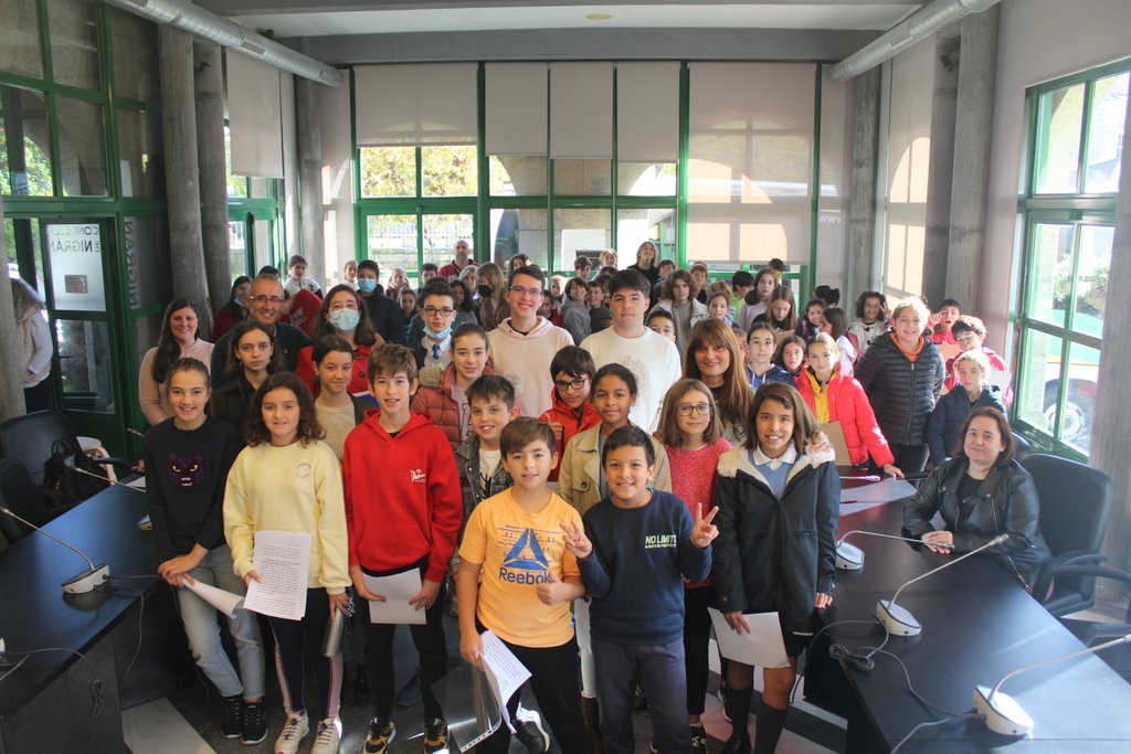 La veintena de niños y niñas, de los diferentes centros educativos de la localidad, expusieron sus preocupaciones ante el alcalde, las concejalas de Educación y de Servicios Sociales, una portavoz de las AMPAS y público.