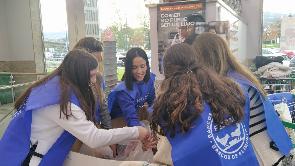 A madriña da Fundación Provincial Banco de Alimentos, Alba Lago, que hoxe participou como unha voluntaria máis na Gran Recollida 2022 nun supermercado de Vigo e outro de Pontevedra, indicou que “se todos abrazamos este sentimento de comunidade, poderemos construír unha gran montaña de solidariedade”. Estas declaracións realizounas a presentadora de Informativos Telecinco durante a súa participación en dous establecementos tanto de Vigo como de Pontevedra. No caso da cidade olívica, Lago compartiu experiencia con alumnos e alumnas do Colegio Amor de Dios que estaban a cubrir unha quenda no Froiz de Navia, mentres que en Pontevedra facilitou doazóns xunto a un grupo de estudantes do Colexio SEK Atlántico Internacional, no Froiz da rúa Echegaray.