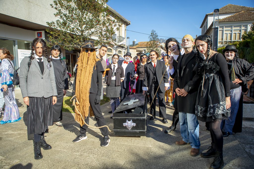 Más de 1.100 participantes, alumnado y profesorado de los diferentes centros educativos de Gondomar, participaron en la mañana de este viernes en el tradicional desfile escolar de Carnaval. A las 11:00 de la mañana las comparsas participantes de cada uno de los centros educativos de enseñanza primaria y secundaria de la villa se concentraron en el aparcamiento del pabellón municipal para posteriormente recorrer las principales calles de Gondomar, en un desfile lleno de música, color, disfraces y coreografías.