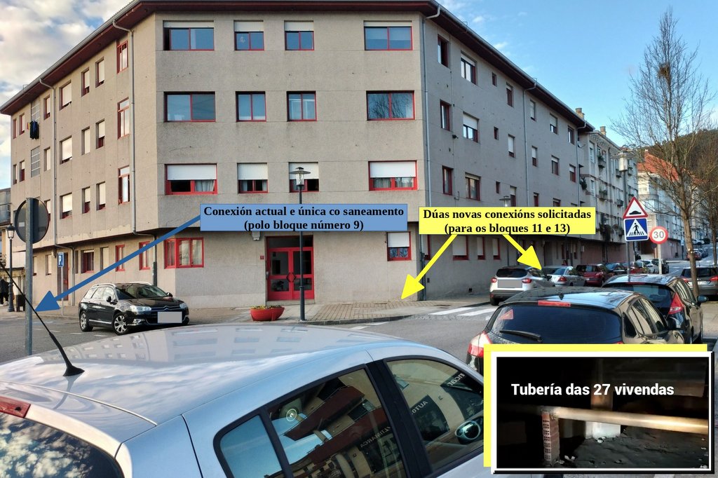 El BNG reclama al Gobierno local que dote de conexión individualizada con el saneamiento municipal a cada bloque de viviendas de los números 9, 11 y 13 de la calle Avenida del Conde, tal como han solicitado en reiteradas ocasiones las vecinas y vecinos de esos edificios.