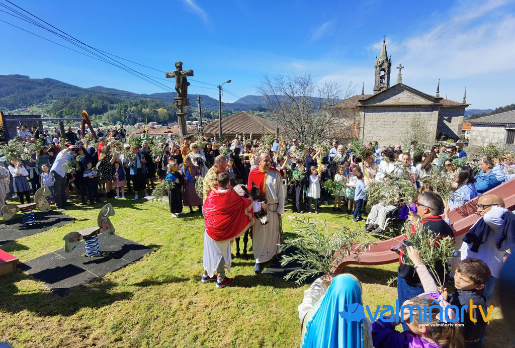 Gondomar inició este domingo la programación de actos y cultos religiosos de la Semana Santa con la celebración de la Procesión de la Borriquita, que por cuarto año y dos de parón por la pandemia, contó con un burro vivo. Tras la bendición de Ramos y Palmas en el parque infantil situado tras la Iglesia Parroquial de San Benito, con la asistencia de decenas de fieles, comenzó el recorrido hasta el Templo, donde se celebró la Misa de la Pasión del Señor.