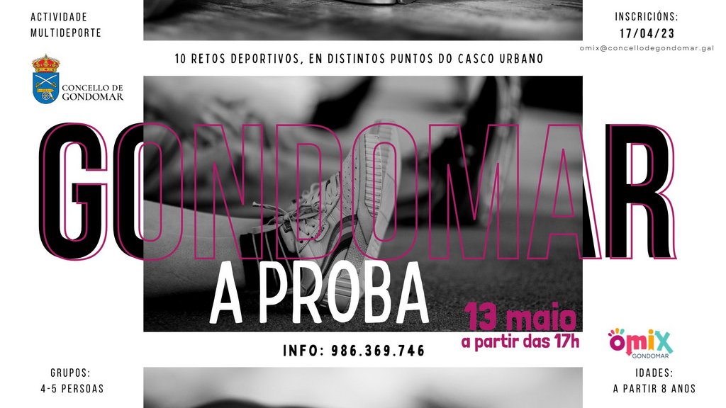El Ayuntamiento de Gondomar abre las inscripciones para el evento deportivo “Gondomar a Prueba”, que se celebrará el sábado 13 de mayo a las 17:00 horas. Una actividad de multideporte, en la que se deberán formar grupos de entre cuatro o cinco personas, con edades a partir de los ocho años y con una capitana o capitán de equipo. Juntos deberán superar 10 retos distribuidos por el casco urbano del Ayuntamiento en un tiempo máximo de una hora.