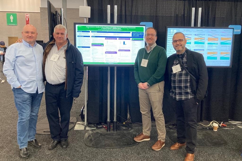 El jefe de Neurología de Ribera Povisa, José Ramón Lorenzo, y el neurólogo Antonio Pato han presentado este martes en Boston ante la Academia Americana de Neurología los resultados de un estudio que ha analizado los efectos de un tratamiento contra la esclerosis múltiple que mejora sustancialmente la calidad de vida de los pacientes. Lorenzo y Pato han participado en la 75 edición del encuentro anual de la Academia Americana de Neurología (AAN), que se celebra en Boston del 22 al 27 de abril. También asistieron Miguel Ángel Llaneza y Adrián Arés Luque, neurólogos que ejercen en Oviedo y León, respectivamente.