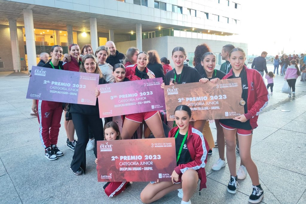 La Escuela de Danza LDanzia de Gondomar logró este fin de semana ocho premios en Vigo Porté 2023, celebrado en el Auditorio Mar de Vigo con 1.500 bailarines y 400 coreografías. La escuela gondomareña, dirigida por la profesora Lorena Benítez, acudió con 50 bailarines y bailarinas y se llevó el primer premio con la coreografía “Dirrty”, que también logró el premio a la mejor coreografía mini grupal. “Tango”, “Kill The Lights” y “Rihanna Performance” se alzaron con el segundo premio y “Mi Gente”, “Cruella” y “Vínculo” con el tercer premio.