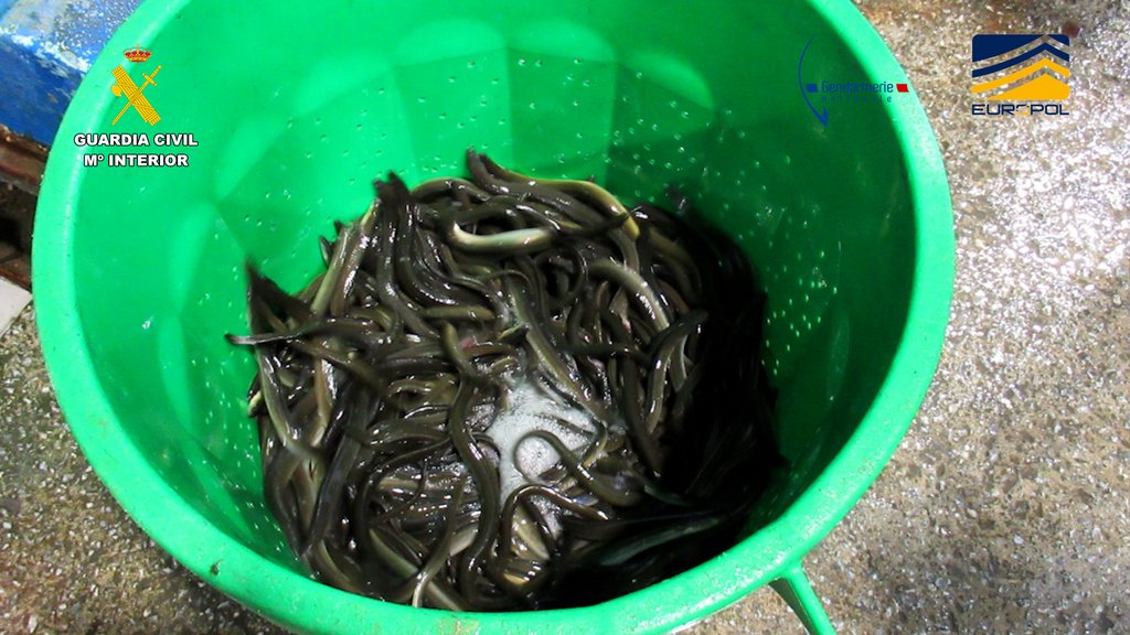 A Garda Civil, nunha operación conxunta coa Xendarmería Nacional Francesa, coordinada por Europol e a Oficina Europea de Loita contra a Fraude (OLAF) incautou 1,5 toneladas de angulas vivas. Realizáronse unha trintena de rexistros simultáneos en domicilios, sedes de empresas e viveiros clandestinos de España e Francia, e estendidos a Bélxica e Polonia, nos que se detivo a un total de 27 persoas por delitos de pertenza a organización criminal, tráfico de especies protexidas, contrabando e branqueo de capitais. No seo destes rexistros tamén se incautaron varias toneladas de lotes conxelados de angulas, sen rastrexabilidade nin controis sanitarios, non aptos para a súa disposición na cadea alimentaria. Ademais, interviñéronse bens por valor de máis de 2 millóns de euros.