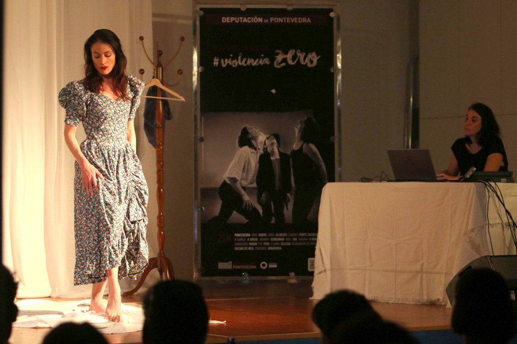 “Deshabitada”, que así se tituló la acción escénica que protagonizaron la actriz Nerea Brey y la videocreadora Miriam Rodríguez, mostró a través de texto, movimiento, vídeo y audio, como “este campo de trabajos forzados” posee “unas fronteras invisibles que, si no se sacan a la luz, resultan más complicadas de vencer”. La propuesta contó con audios con testimonios de mujeres reales contando su día a día, así como imágenes en bucle referentes al tema, para reflejar la situación que genera el hecho de que los cuidados y la organización de la vida diaria acaben recayendo en las mujeres, tareas que tienen que compaginar con el trabajo fuera de la casa. “Esto hace que tengan muy poco tiempo libre en la casa y fuera y acaben medio recluidas por esa falta de tiempo”, señalaron las artistas.