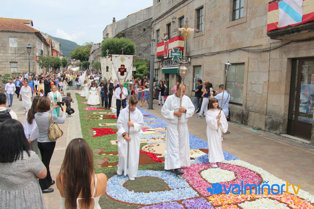 La procesión comenzó a las 13:30 horas desde la Iglesia Parroquial, después de la Solemne Misa de Corpus Christi, en la que se celebraron las tradicionales comuniones. La comitiva partió de la escalinata de San Benito acompañada por la Agrupación Musical de Vincios, y recorrió la Alameda, las calles Eduardo Iglesias, Elduayen, Portugal y Manuel Alonso para detenerse en la Plaza Paradela, para regresar de nuevo por Eduardo Iglesias y Manuel Losada.
