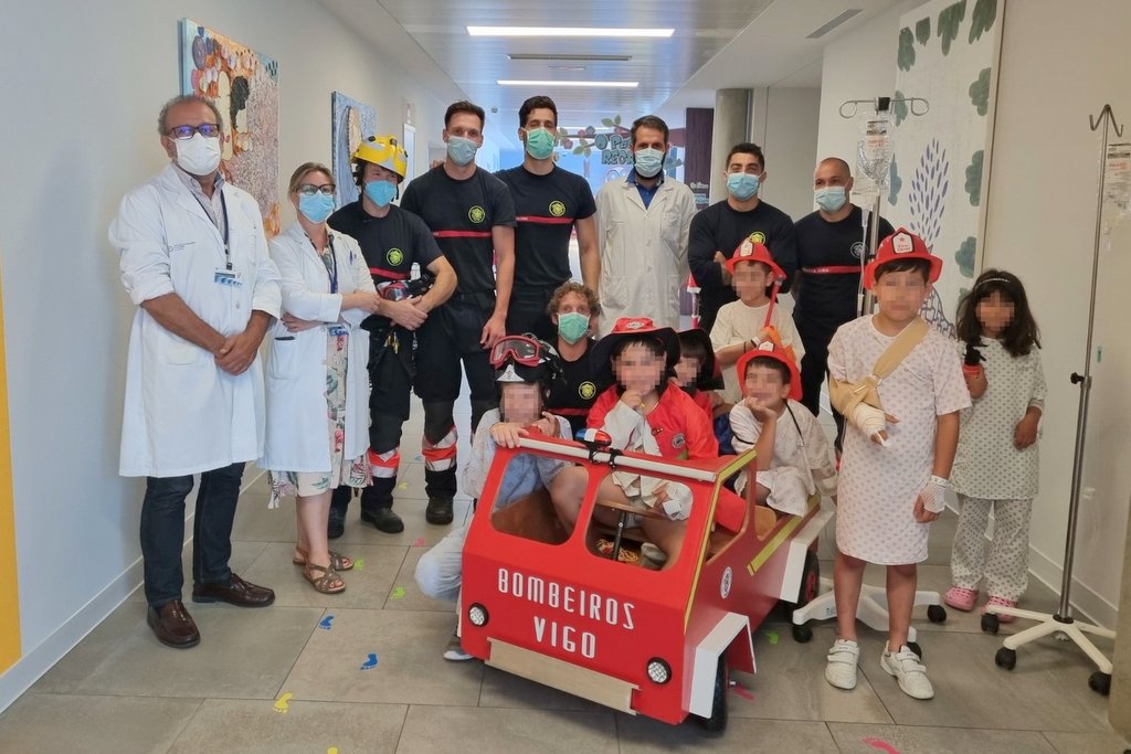 A Asociación de Bombeiros de Vigo realizou hoxe unha visita moi especial aos nenos ingresados no hospital Álvaro Cunqueiro, xa que accederon á Unidade de hospitalización de pediatría entrando polas ventás, realizándolles unha demostración de rapel. Para isto descolgáronse con cordas desde a cuberta, pola fachada interior do edificio. Unha vez dentro da planta, fixeron entrega de diferentes regalos aos nenos. Esta demostración xerou gran expectación non solo entre os pequenos pacientes senón tamén entre os seus familiares e o persoal do hospital. A xerencia agradece esta iniciativa grazas á cal os nenos tiveron un día diferente, alegre e cheo de emoción.
