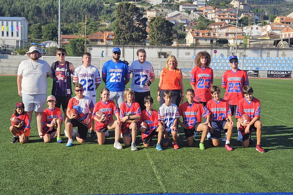 La Concejala de Deportes del Ayuntamiento de Baiona, Ana María Iglesias Rodríguez, realizó esta mañana una visita al Campus de Fútbol Americano “Flag-Football” que se celebra a lo largo de esta semana en las instalaciones del campo de fútbol del Aral. El cuerpo técnico que imparte el campus está formado por entrenadores titulados por la USA Football y la NFHS. Como actividades complementarias los niños y niñas participantes podrán interactuar con jugadores en activo de la Liga Nacional de Fútbol Americano. También realizarán visitas a la playa y muchas otras sorpresas.