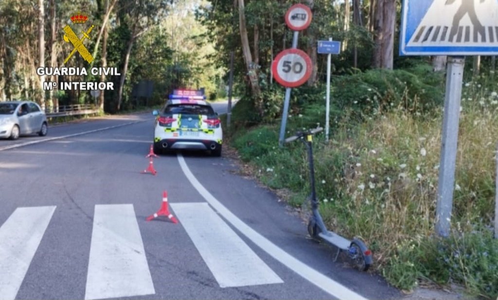 El pasado viernes, una patrulla del Destacamento de Tráfico de la Guardia Civil de Porriño, observa a un individuo circulando con un patinete eléctrico por el km. 4,400 de la carretera EP-2601, vía interurbana en Mos.