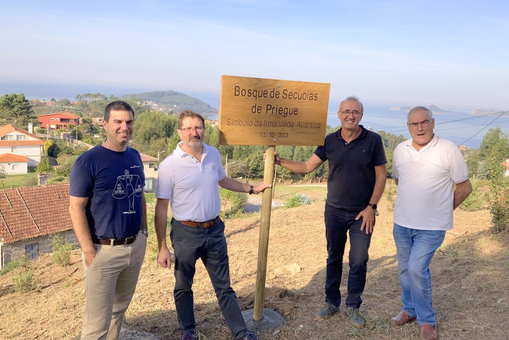 La hermandad transoceánica entre los pueblos ahora tiene un símbolo tangible en Nigrán: una zona verde con ocho secuoyas gallegas “hijas” de las 500 que donó el gobierno estadounidense en 1992 para conmemorar los 500 años del descubrimiento de América. Esta plantación, con increíbles vistas precisamente hacia el océano Atlántico, se sitúa en el alto de Priegue (barrio de Pedrosas) y fue posible gracias al “rescate” hace 5 años de los brotes en Baiona por parte de José Manuel Rodríguez. Ahora, este vecino defensor de la tesis del “Colón gallego”, las dona al Ayuntamiento para, en el 12 de octubre, conmemorar oficialmente desde Nigrán el encuentro entre los dos mundos. “Es el árbol más emblemático de EEUU, sugiere belleza e inmortalidad. Mediante este pequeño bosque con vistas hacia el Atlántico, queremos reivindicar la paz y la hermandad transoceánica”, explica el alcalde, Juan González, quien agradece especialmente esta donación. Estos árboles perennifolias son los más grandes del mundo, pueden alcanzar más de 100 metros de altura y hasta 4,5 m de diámetro en su territorio de origen, viviendo entre 1.000 y 3.000 años.