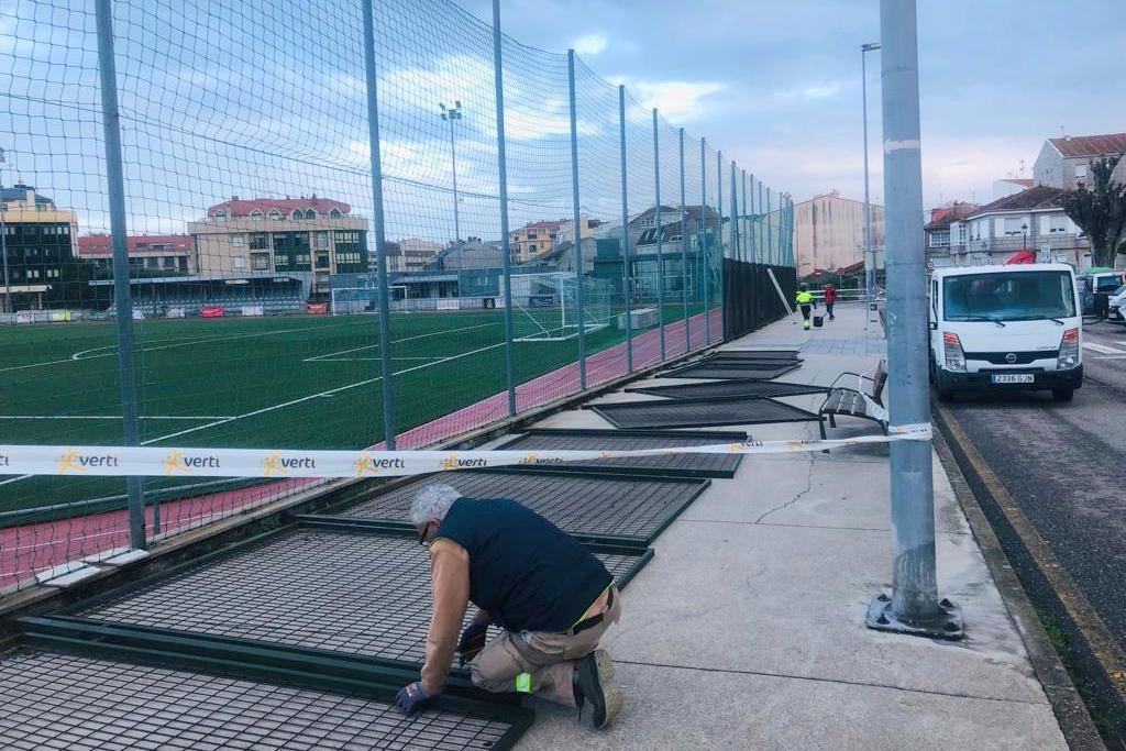 El punto más conflictivo estuvo en el Campo del Aral, donde el temporal hizo ceder parte la valla metálica que rodea al campo de fútbol municipal. Tras cercar la acera de la zona, los trabajadores se encuentran desmontando la infraestructura para evitar futuros desprendimientos y para que la zona quede libre de peligro, pues se encuentra a escasos metros del CPI de Cova Terreña, del Pabellón Municipal y del Cementerio Municipal de Baiona.