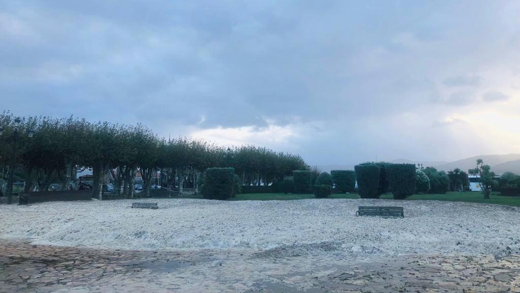 La Playa de A Concheira y el Parque de la Palma de Baiona amanecieron cubiertos con un manto de espuma. La espuma marina es un tipo de espuma creada por la agitación del agua de mar, particularmente cuando contiene altas concentraciones de materia orgánica disuelta (incluyendo proteínas, ligninas, y lípidos) obtenida a partir de fuentes tales como la distribución en alta mar de las floraciones de algas y yodo. Estos compuestos pueden actuar como agentes tensoactivos o agentes espumantes. A medida que el agua de mar es batida por las olas rompientes en la zona de olas adyacentes a la costa, la presencia de estos agentes tensoactivos en estas condiciones turbulentas atrapa el aire, formando burbujas persistentes que se pegan la una a la otra a través de la tensión superficial. Debido a su baja densidad y persistencia, la espuma puede ser soplada por fuertes vientos en tierra desde el interior de la playa.