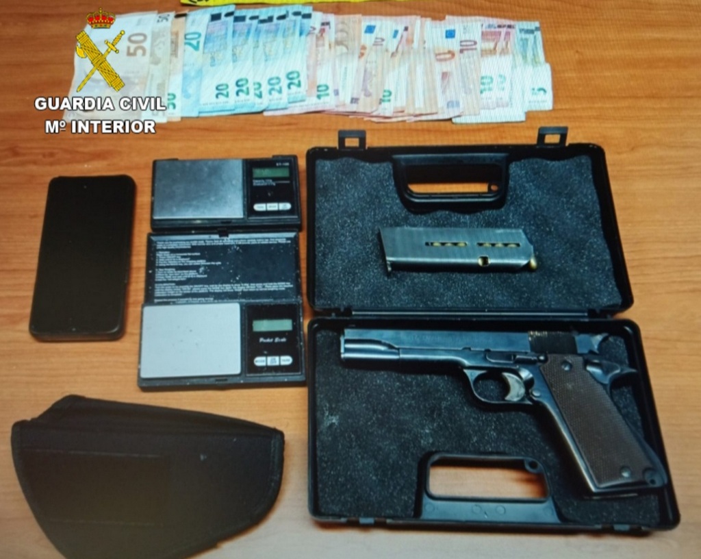 El equipo EBIO de la Guardia Civil de Ponteareas detiene a un vecino de la localidad como supuesto autor de un delito de tráfico de drogas y otro de tenencia ilícita de armas. La investigación se inicia a principios de verano a raíz de las sospechas de que esta persona se puede estar dedicando a la venta y menudeo de drogas.