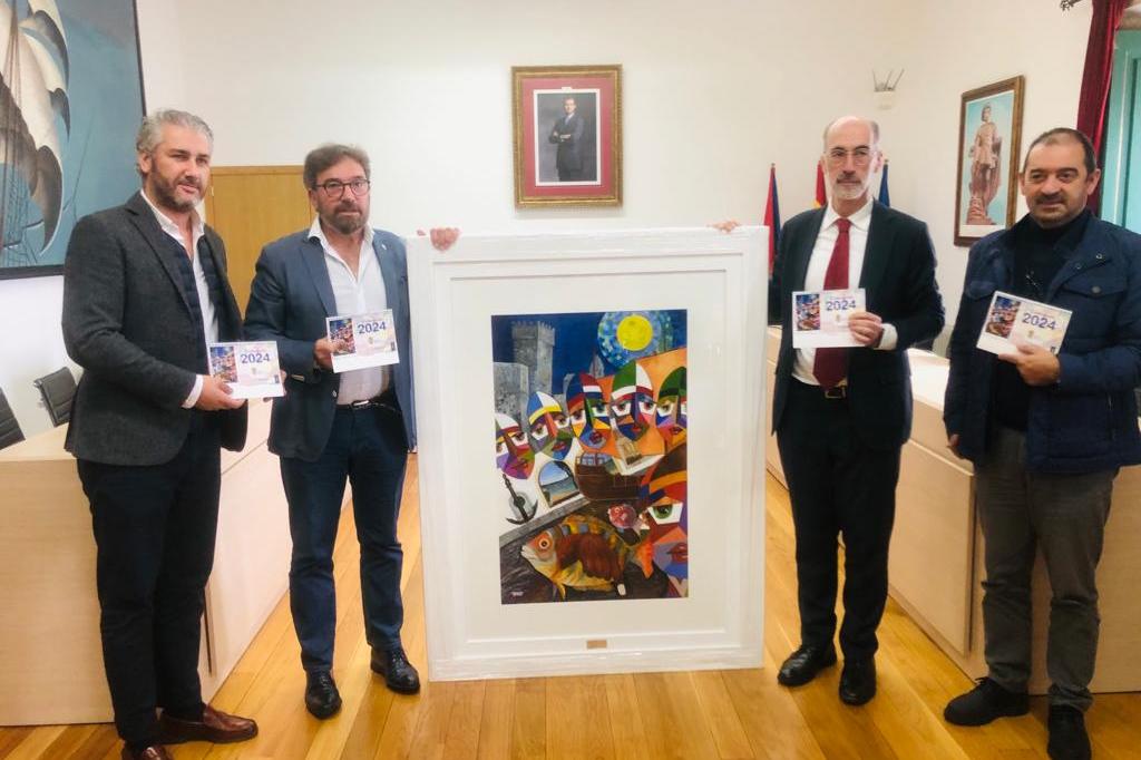 El salón de plenos del Concello de Baiona acogió este miércoles la presentación del Calendario del Concello de Baiona 2024. En ella participaron, el Alcalde de Baiona, Jesús Vázquez Almuiña, Jorge Trigo Somoza, autor de las pinturas que ilustran el calendario, Rodrigo González, delegado de Gestagua en Galicia, y Ramón Abal, delegado de Gestagua en Baiona. “Desde GESTAGUA estamos encantados de continuar colaborando con el Concello de Baiona, en este caso con la elaboración y promoción de estos originales y valiosos calendarios gracias a las pinturas del artista local Jorge Trigo. Reafirmamos así nuestra cercanía y compromiso con toda la ciudadanía, que como nos recuerda el propio calendario es de 24 horas los 7 días de la semana durante los 365 días del año”.