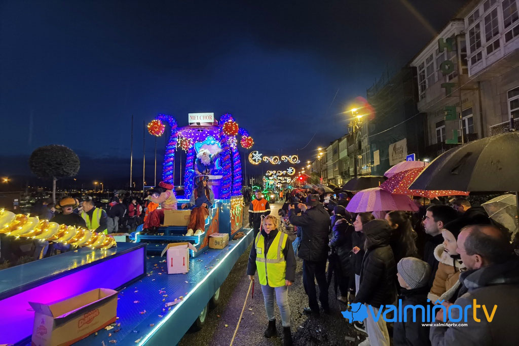 As principais rúas de Baiona enchéronse un ano máis, e a pesar da choiva, de centos de veciños e visitantes de todas as idades para recibir ás Súas Maxestades de Oriente. Melchor, Gaspar e Baltasar partiron desde a rotonda da Urbanización Puente Romano de Sabarís para continuar por Julián Valverde, Porta do Sol e a Avda. Urbana ata a Praia de Santa Marta, onde se uniu a Comitiva Real. A Rondalla da Asociación de Veciños “Galiñeiro” de Vincios foi a encargada de encabezar o desfile. Seguíronlle as carrozas do Erizana Club de Fútbol, o Baíña Fútbol sala e o grupo de baile Giro’s de Baíña. Abrindo o paso ás Súas Maxestades os Reis Magos de Oriente foi un grupo de Trasgos de Nadal.